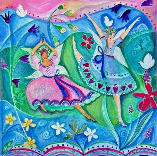 This Monday morning was particularly dreary and I thought a garden fairy painting would cheer me up. There’s nothing like bright colours and some magic