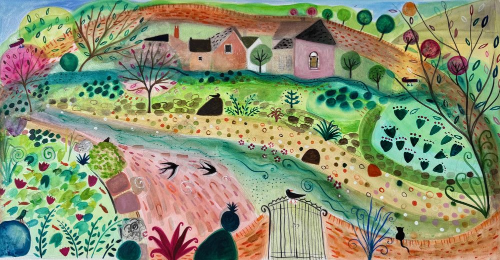 I began this painting over the summer and continued to work on it at Little Verzons farm in Herefordshire where I was exhibiting for H-art. I was also exhibiting at St. Mary Magdalene’s church at Leintwardine in Hereford, not far from the border of Wales.
